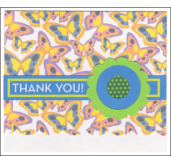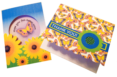 This sunflower card has a die-cut shaped opening on the front which allows the printed butterfly sentiment that's inside the card to show through. Four different sentiments are included.