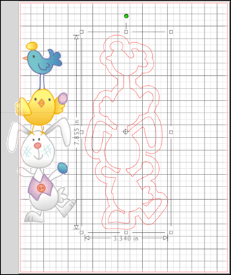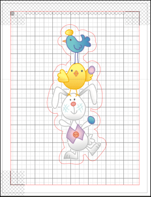 | 15. | You can now print and cut the Easter Card Embellishment files. A pdf file is included for printing, and the cut file is provided in both .svg and .studio formats. See the Silhouette Print & Cut Tutorial if you are not familiar with using the print and cut feature of the Silhouette. Use your pieces to create the Easter card shown at the top of this page, which is made by scoring and folding an 8-1/2" by 11" piece of light blue cardstock folded in half and attaching your print and cut pieces. |